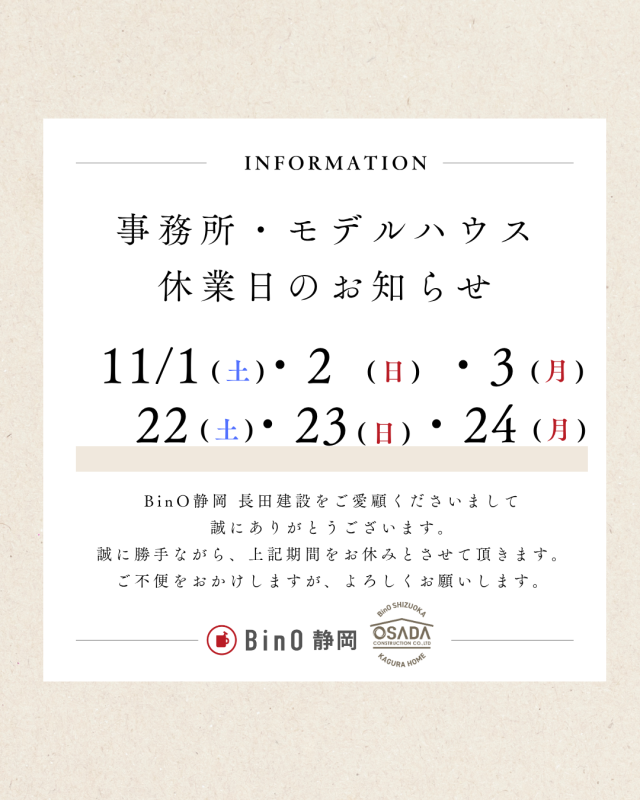 日頃より、BinO静岡 長田建設(株)をご愛顧くださいまして誠にありがとうございます。